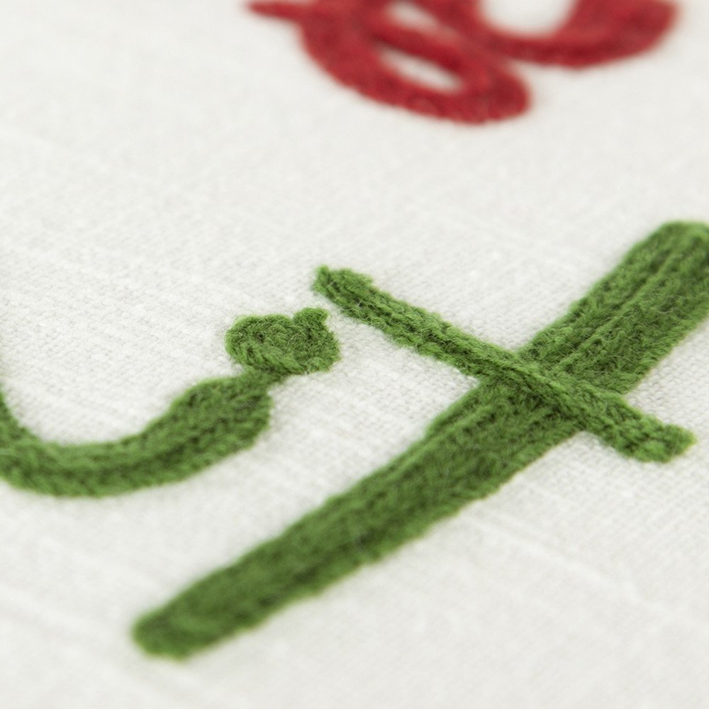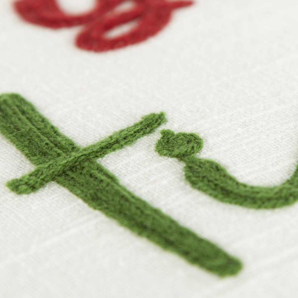 Themed in a wintry holiday vibe, this Ivory Tinsel In A Tangle Dimensional Throw Pillow is sure to brighten up any style of interior. A fun message stating ‘Don’t get your tinsel in a tangle’ is machine-embroidered in the center with hand-beaded lights replicating fairy lights and a pop of color in the form of red, blue, and green corner tassels to add a cheerful touch to the pillow. Crafted using a cotton material, the pillow is solid in the back with a hidden zipper closure for convenience. The pillow comes with a plush polyfill insert that provides a soft and cuddly feeling. The pillow is knife-edged for sharp borders and a polished look that goes with any interior décor. Update your interior style with this artistic throw pillow that will complement your modern, contemporary, and transitional décor. 20” x 20" x 6.25”