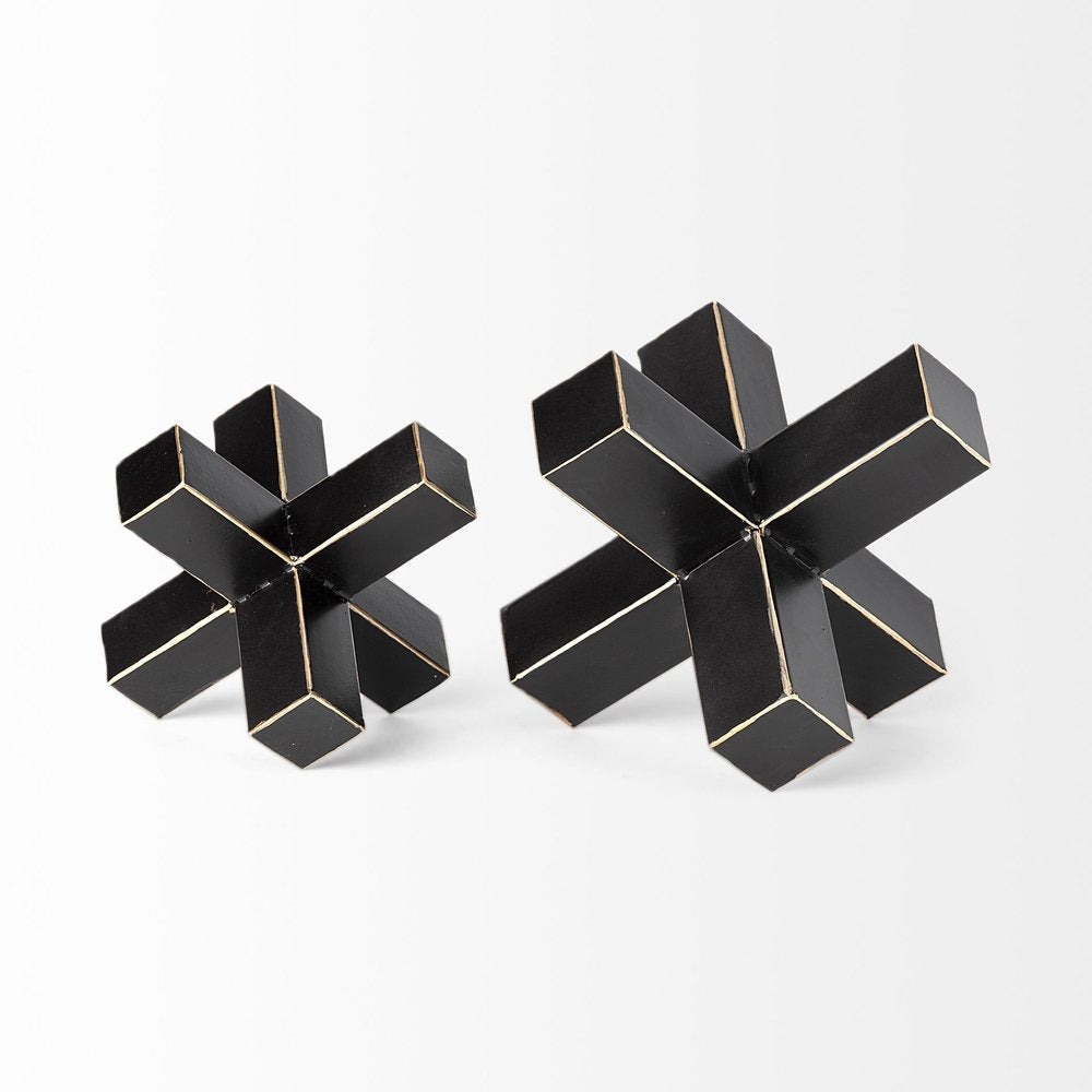 This 8-inch black metal tabletop sculpture, machine-made to perfection, features a nature-inspired design that brings a touch of contemporary style to your living room decor. Crafted from high-grade metal, this piece exudes elegance and sophistication, making it a versatile addition to any space. With its sleek black color, this tabletop sculpture effortlessly complements your existing decor, whether displayed on its own or paired with other decorative accents for a cohesive and chic look. 8-inch h x 8-inch w x 9-inch d.