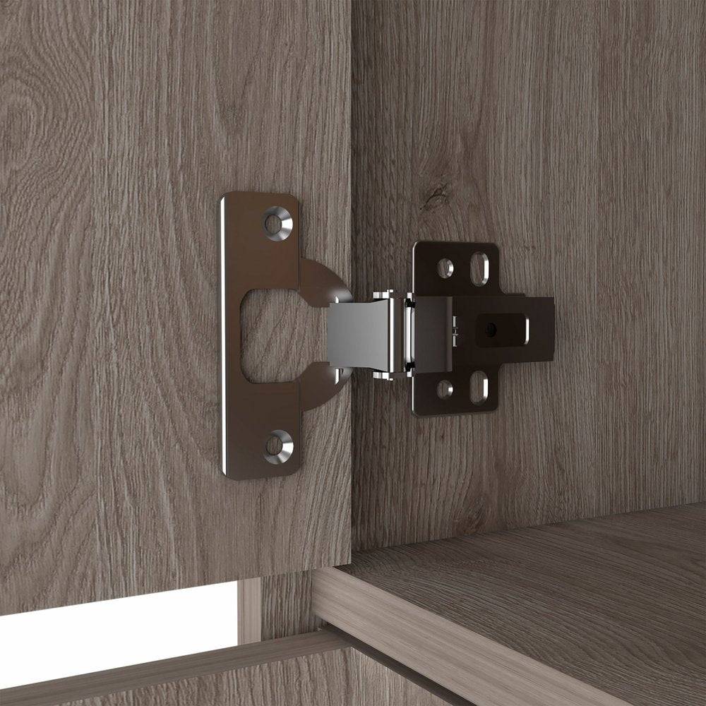 Create your own bar paradise and party-ready corner for your contemporary living space with this Light Gray Bar Cabinet with Two Door Panels. The bar cabinet’s design itself creates the ultimate feeling of comfort and pleasure, together with the light gray which visually brings a balanced feeling to your space. Each door panel comes with two inner spacious shelves with eight liquor/wine bottle cubbies on the upper right side of this cabinet, and with a wide top surface making this a complete storage corner, and quick access for relaxing or welcoming your special guests with a luxury and happy vibes. Crafted from durable particleboard which is perfectly designed to resist moisture and humidity. Four sturdy open and airy geometric designed black metal legs add to a contemporary design feel. Have the pleasure of entertaining to a whole new level with this functional yet fashionable piece. 40.90” X 23.90” X 13.30”