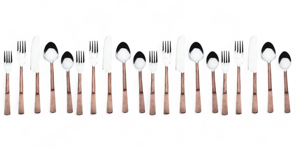 Matte Copper Stainless Steel Twenty Piece Hand Forged Flatware Set