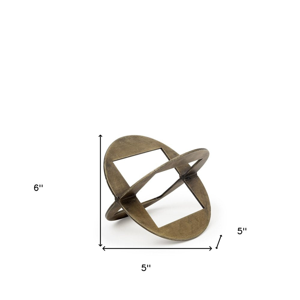 Unique and decorative, this 6-inch gold metal geometric orb tabletop sculpture will leave a lasting impression. Crafted with precision using high grade metal, this sculpture boasts a striking geometric design that adds a touch of elegance to any space. The distressed metal finish gives it a vintage charm, making it a perfect addition to your home decor. Whether displayed on its own or paired with other decorative pieces, this tabletop sculpture is sure to be a conversation starter. 6-inch H x 5-inch W x 5-inch D