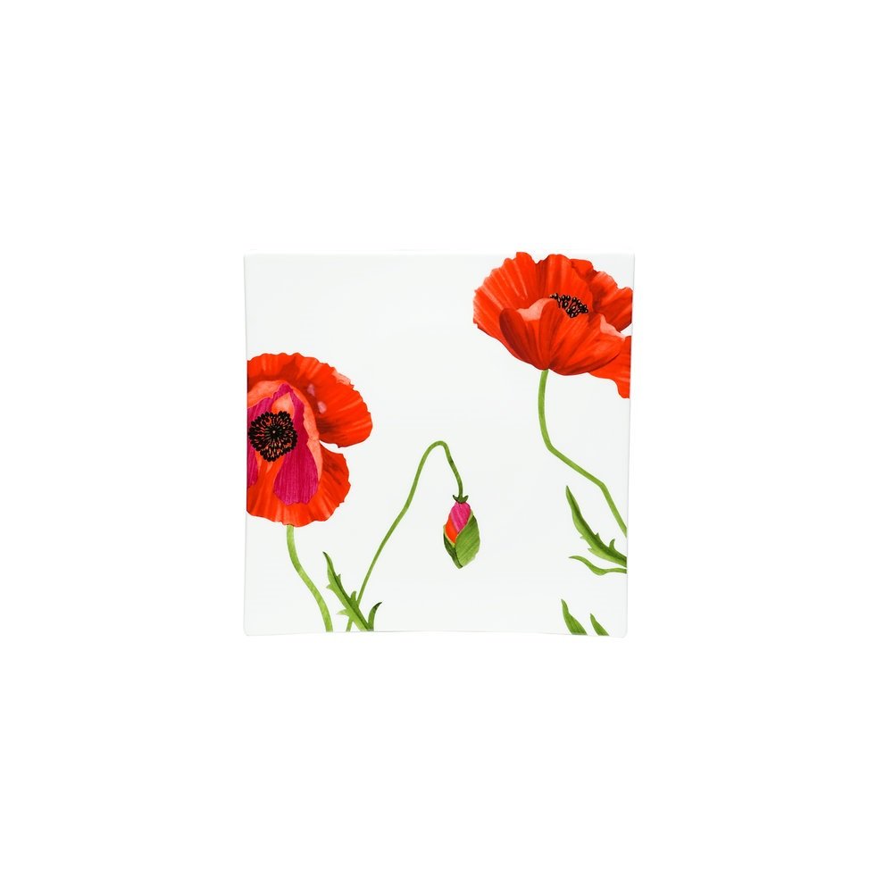 This red and white four piece square floral bone china dinnerware set is a stunning addition to any dining table. With its contemporary poppy floral design and vibrant splashes of color on a white base, it is sure to catch the eye. The set includes one square main plate, one salad plate, one soup bowl, and one mug, making it perfect for a cozy dinner for one. Made from high-quality bone china, this dinnerware set is not only stylish but also durable. It is dishwasher safe, stackable, and chip-resistant, ensuring easy cleaning and long-lasting use. Additionally, it is microwave safe, allowing you to heat up your favorite soups or beverages with ease. Upgrade your dining experience with this elegant and practical dinnerware set. 1-inch H x 10-inch W x 10-inch D