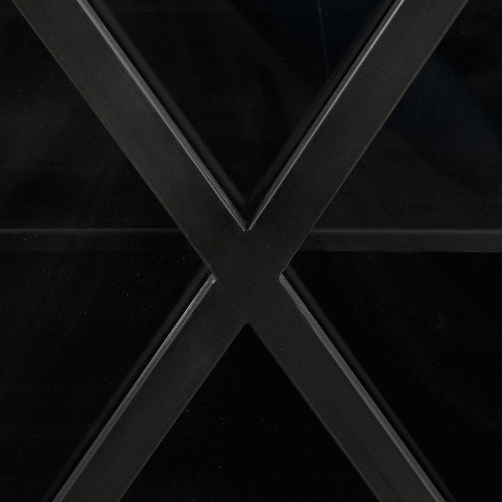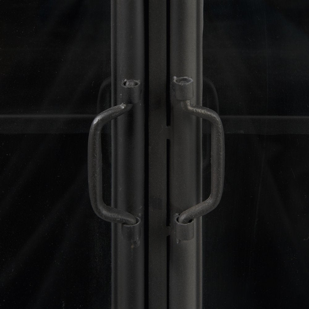 Glass doors elevate the design of this iron sideboard, adding a luminous touch. With ample shelves included, storage becomes both functional and stylish. The industrial style in black color exudes a trendy and modern vibe. The iron countertop enhances durability, making this cabinet a long-lasting and versatile addition to your space. Incorporate this sideboard to elevate your storage options while complementing your room's fashion-forward aesthetic. 33-inch H x 40.25-inch W x 16-inch D