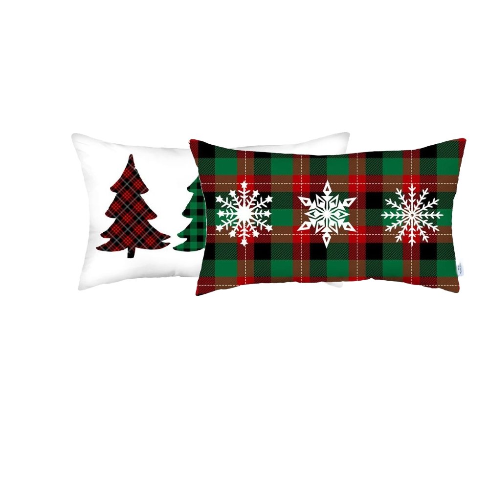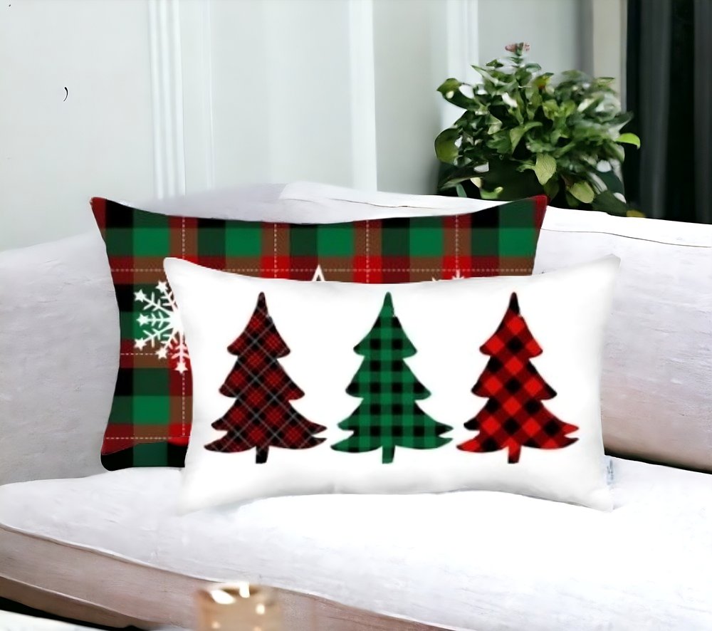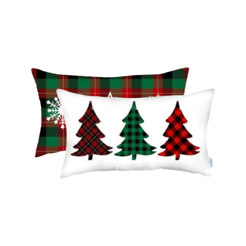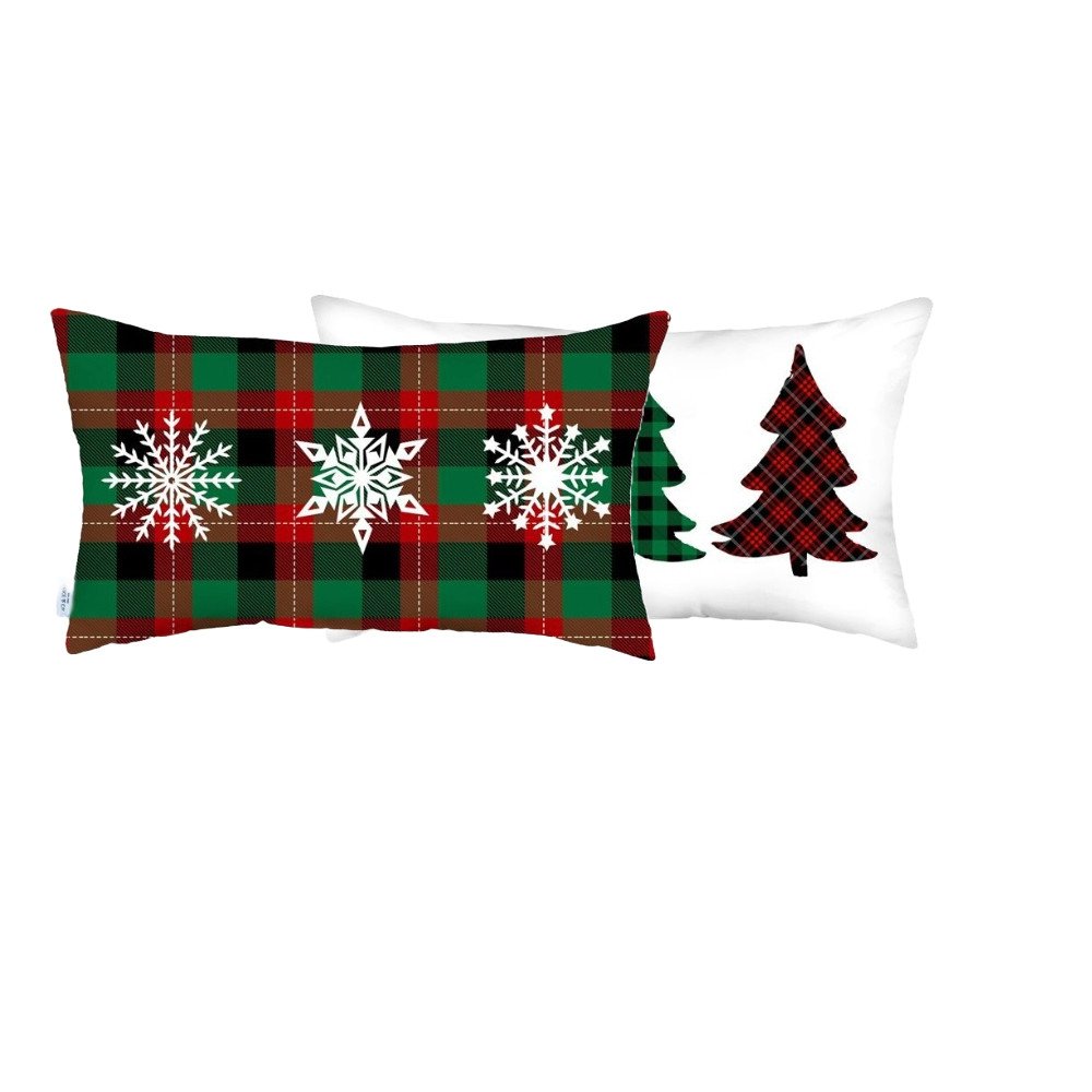 Bring some Christmas fun and folly to your space with this mixed set of Christmas Tree Trio Plaid and Christmas Snowlake Trio Plaid Printed Lumbar Pillow Covers. Crafted in a super soft brushed polyester, this rectangular lumbar support shape pillow cover has high-quality digital printing on the front while the backside is a solid natural color. There is a hidden zipper closure that gives a clean and seamless look all the way around. 12" X 20" each. Set of 2.