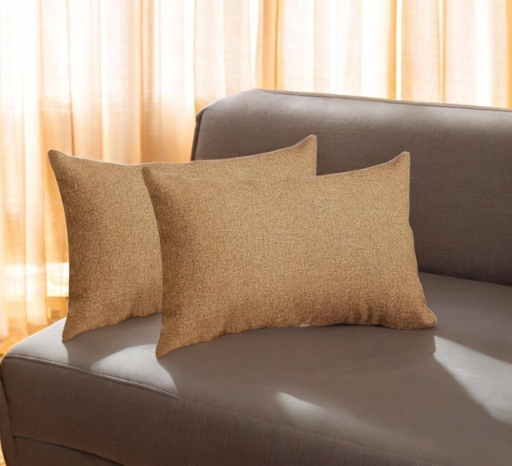 Set of Two 12" X 20" Tan Fabric Lumbar Throw Pillow Covers