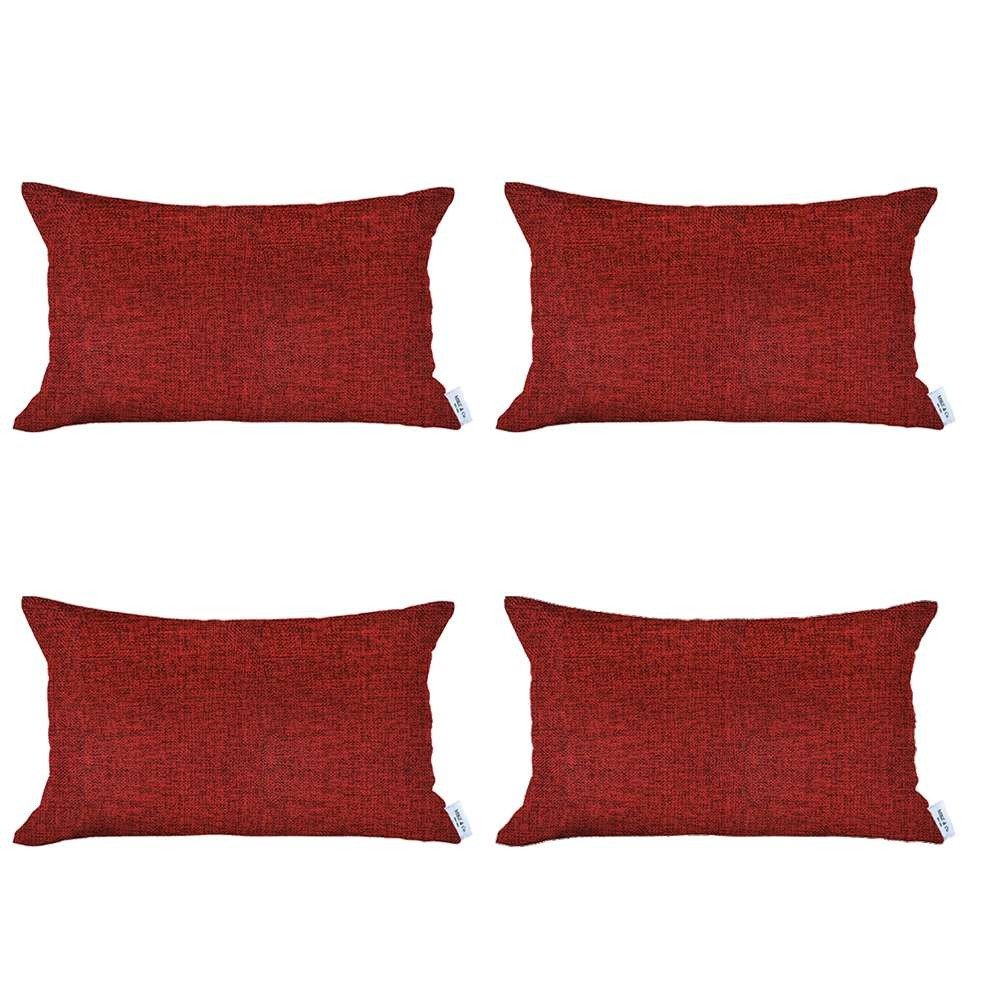 Set Of 4 Red Jacquard Lumbar Pillow Covers