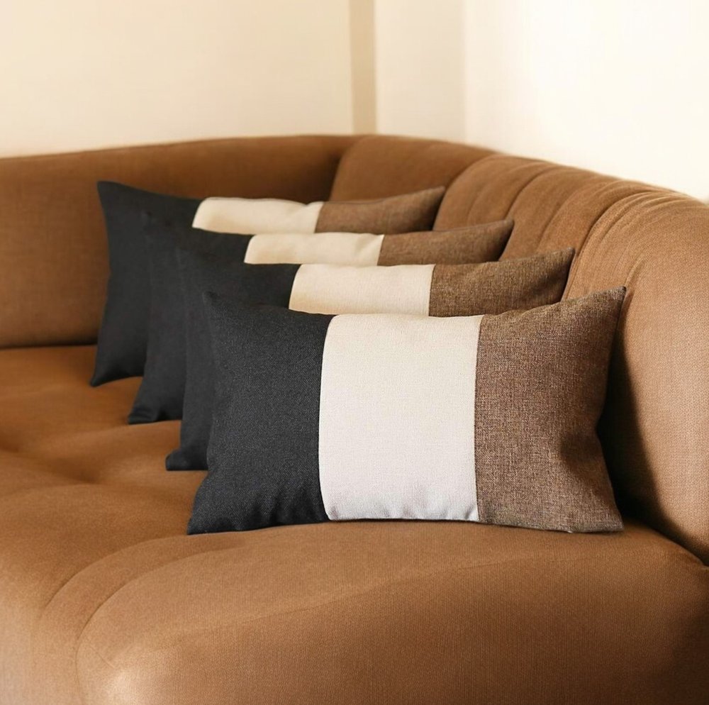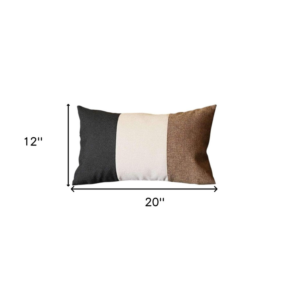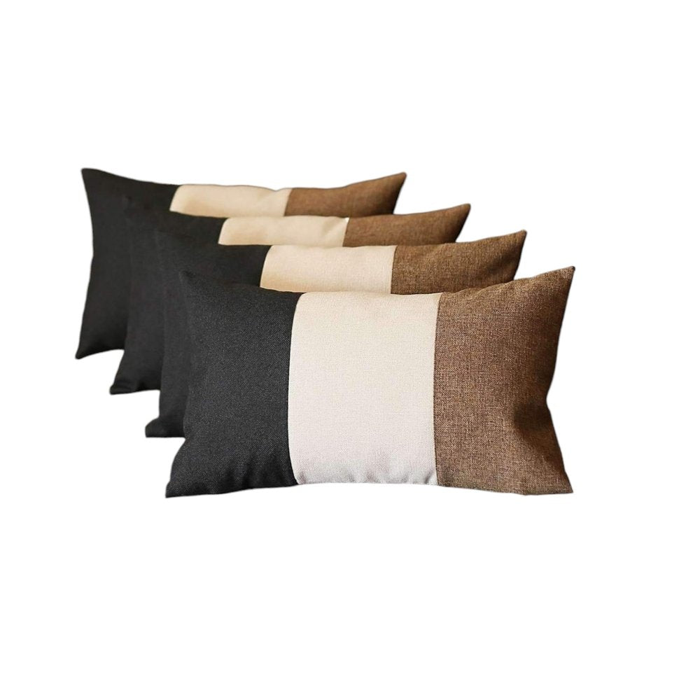 Set of Four 12" X 20" Brown and Black Fabrc Lumbar Throw Pillows