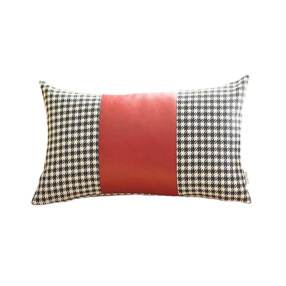 Keywords | faux leather lumbar throw pillows, leather lumbar throw pillows, houndstooth fabric faux leather lumbar, red black white houndstooth fabric, set 12" X 20" red black |