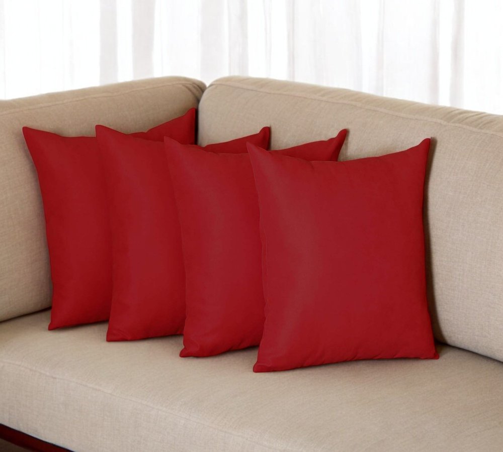 Set of Four 20" Red Fabric Throw Pillow Covers