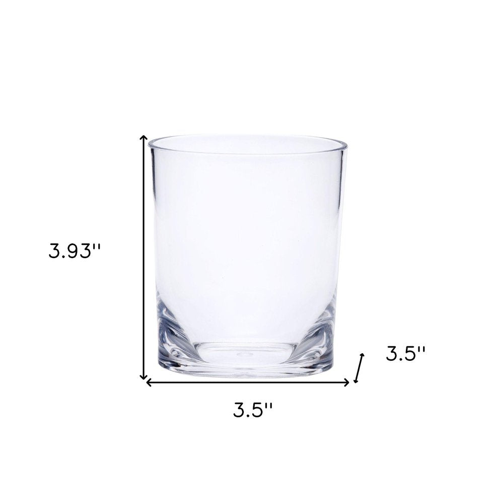 The set of four clear acrylic stemless whiskey glass is a good-looking glass to use for your favorite whiskey but can also be used for most any other drink or beverage. Whether you are entertaining or simply enjoying a drink by yourself, a quality set of stemware is a must-have. Add an air of casual elegance with the fresh and modern design of a stemless glass. The addition of a machine embossed design gives this glass special character and dimension. Add iconic style to your setting with this good looking no pattern and not solid color pattern. The smooth non-texture of this surface will feel elegant and sleek in your hand. Whatever your beverage preference, you are certain to enjoy the enhanced flavor and taste that comes with consuming from the proper vessel. 3.93-inch H x 3.5-inch W x 3.5-inch D