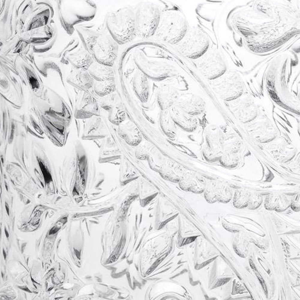 The set of four clear paisley acrylic stemless whiskey glass is a good-looking glass to use for your favorite whiskey but can also be used for most any other drink or beverage. Elevate any occasion with a set of stunning stemware that is as functional as it is beautiful. Whether you prefer a simple or complex flavor profile, stemless glasses offer the perfect vessel to savor every sip. Beautifully machine embossed to give your glassware a bit of design, character, and dimension. Bring a pop of personality to your kitchen or dining room with this paisley pattern. The textured surface gives this a unique and dimensional feel. Whatever your beverage preference, you are certain to enjoy the enhanced flavor and taste that comes with consuming from the proper vessel. 4.25-inch H x 3.38-inch W x 3.38-inch D