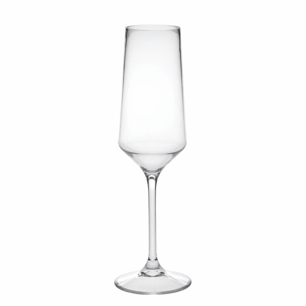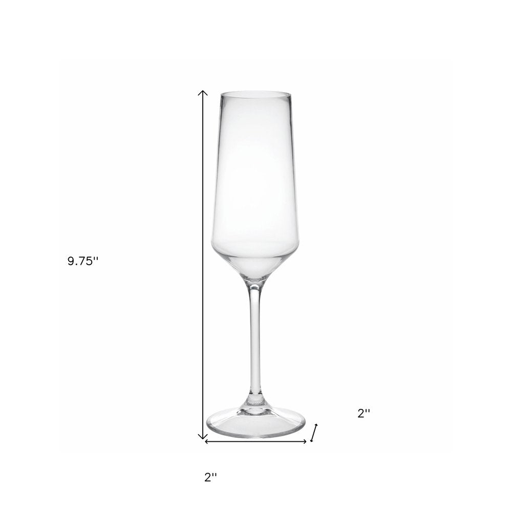 Get ready to enjoy your favorite bubbly in style with this fine set of four clear tritan plastic stemmed flutes. Whether you are entertaining or simply enjoying a drink by yourself, a quality set of stemware is a must-have. From wine to cocktails, the versatility of stemmed glassware adds a touch of refinement to any drink. The smooth non-texture of this surface will feel elegant and sleek in your hand. Whatever your beverage preference, you are certain to enjoy the enhanced flavor and taste that comes with consuming from the proper vessel. 9.75-inch H x 2-inch W x 2-inch D