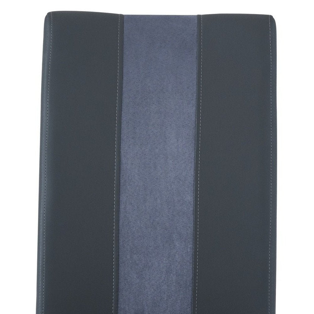 Make your dining experience the best with this set of four gray and silver upholstered faux leather dining side chairs. This armless chair has a sleek silhouette making it ideal for seating around the table but can also double as an accent chair. Complete with solid back, this chair not only looks good but is comfortable. Dining chairs are a great way to compliment your kitchen or dining room but can also be used in the foyer, hallway, or any room you might need extra seating. 39-inch h x 17-inch w x 17-inch d.