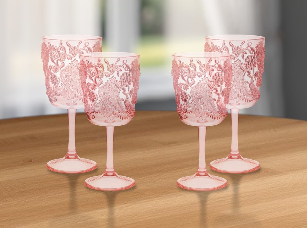 Set of Four Pink Paisley Acrylic Stemmed All Purpose Wine Glass