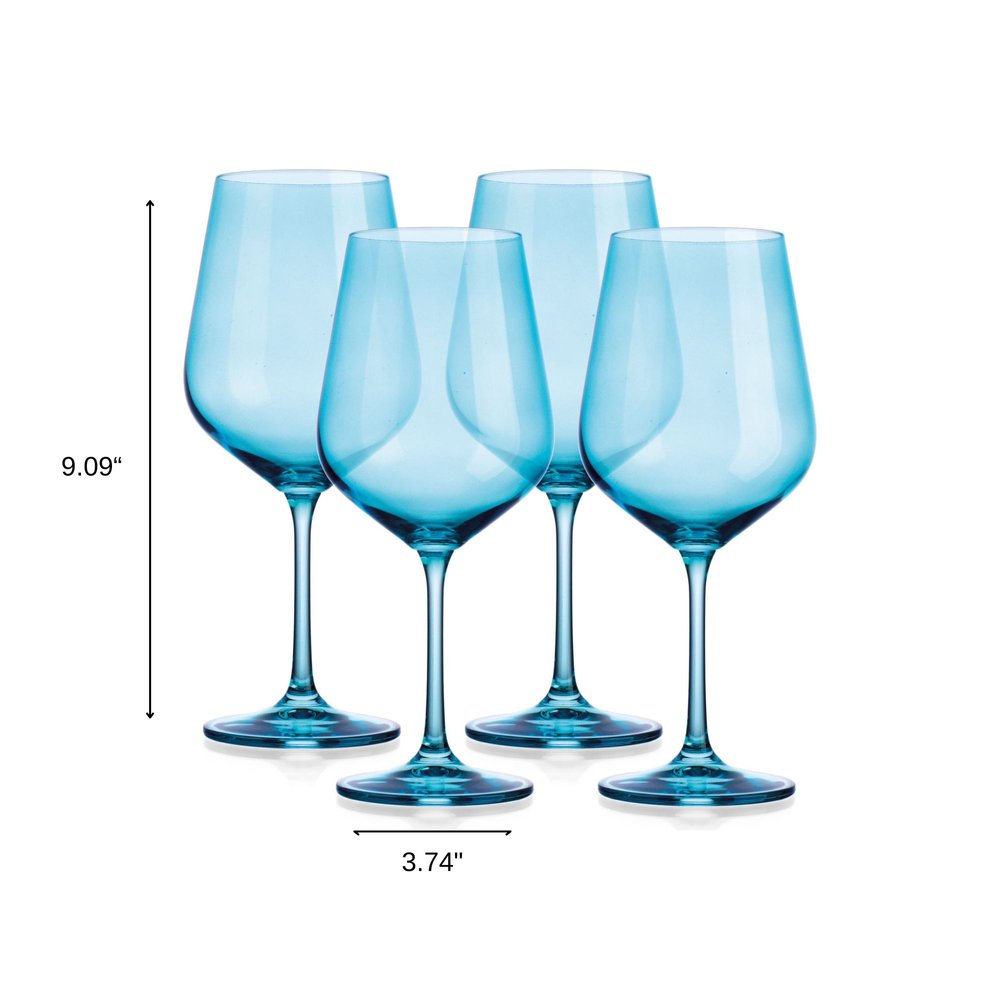 Treat yourself to your favorite vino with the simple sophistication of this set of four blue crystal balloon bowl stemmed red wine glass. Both stylish and practical, this comes as a multi piece glassware set so you don’t have to drink alone. The graceful stem adds an air of sophistication to your favorite beverage. Includes a decorative clear rim to enhance the look and elegance of the glass. Add iconic style to your setting with this good looking solid_color pattern. Simplicity at its finest, this smooth surface is refined without texture. Sipping from the right glass can make the difference between a drink and an amazing experience. 9.09-inch H x 3.74-inch W x 3.74-inch D