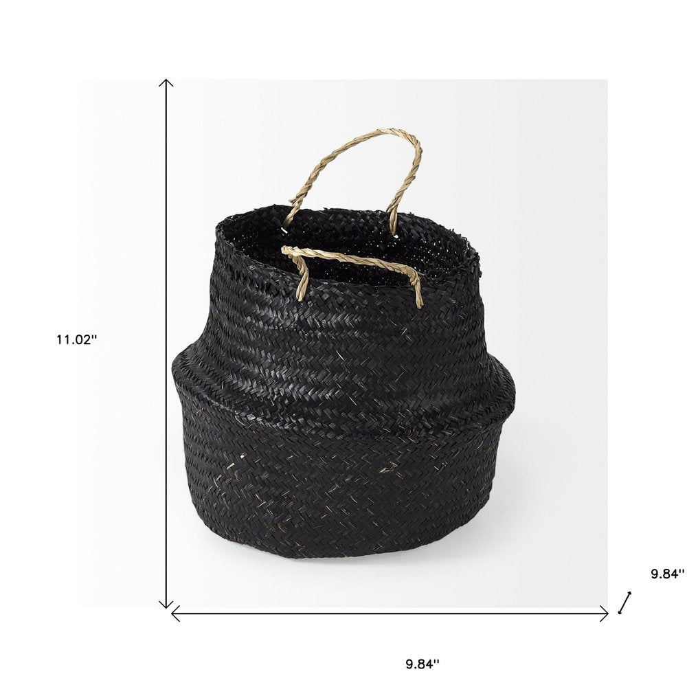 Keep your desk clutter-free with this set of three 10-inch black wicker storage baskets. Crafted from durable wicker material, these coastal-style organizers add a touch of elegance to your workspace. Perfect for storing stationery, gadgets, or personal items, these black baskets offer a stylish solution to keep your essentials within arm's reach. Organize your desk essentials in these versatile organizers and elevate your office decor effortlessly. 11.02-inch H x 9.84-inch W x 9.84-inch D