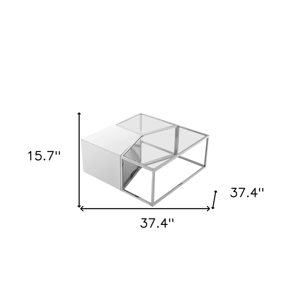 Increase your decorating options with this set of three 37-inch clear and gold glass and stainless steel square mirrored bunching coffee tables that will enhance your space. This trio gives you lots of options to decorate and accent in style. These good looking and handy tables can be used together or seaprately as you choose. The base of this table is made from stainless steel in a gold color that creates a good looking visual contrast to the clear glass tabletop. Reflective pieces of mirrored glass give this table a glamorous and unique look. This square table utilizes its unique shape to give your room a modern geometric accent. If you're looking for something that can fit into a living area, bedroom, or office, this coffee table is for you. This coffee table is the sturdy, reliable and stylish answer to your living room needs. 15.7-inch H x 37.4-inch W x 37.4-inch D