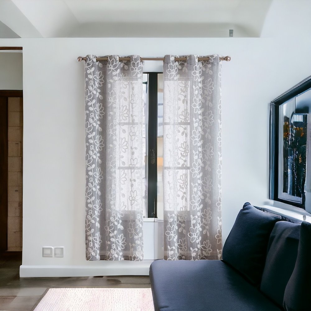 Set of Two 84" Silver Floral Embroidered Window Panels