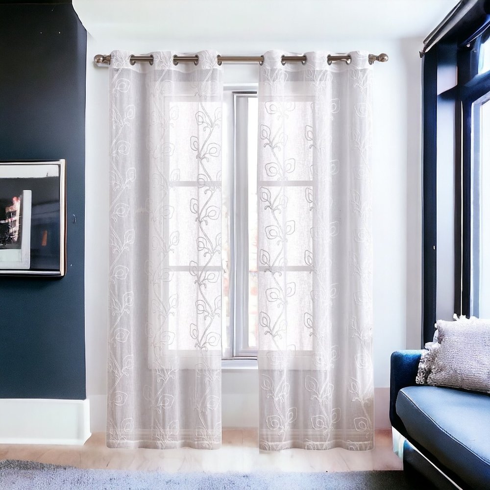 Enhance the elegance of your windows with our set of two 96-inch white boho embroidered window panels. These semi-sheer curtains are perfect for filtering in a soft, diffused light, creating a cozy and inviting atmosphere in your living space. Each set includes two panels, each measuring 38 inches wide and 96 inches long. Crafted from high-quality polyester, these curtains boast intricate boho-inspired embroidery for a touch of contemporary style. The crisp white color adds a clean and timeless look to any room, effortlessly complementing your existing decor. With their versatile design and impeccable craftsmanship, these window panels are sure to be a stunning addition to your home. 96-inch H x 76-inch W x 1-inch D