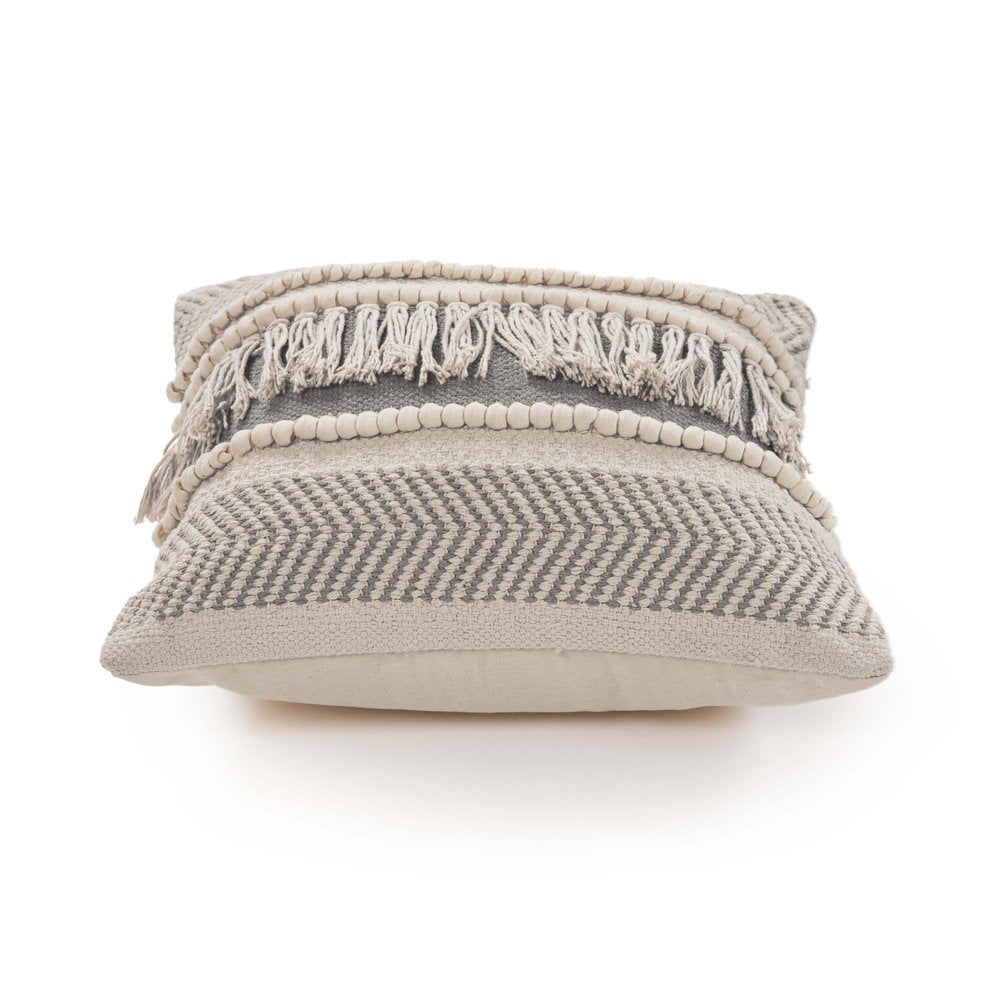 This set of two tan striped cotton throw pillow with fringe will add a beautiful decorative accent to your decor. These tan hued pillows represent quality construction, expertly made from durable cotton that is not only long lasting but super soft to the touch as well. Great to use on its own or mix with other decorations for the perfect look. Decorative pillows are a great way to change up the look and feel of your space easily and quickly. 20-inch H x 20-inch W x 4-inch D