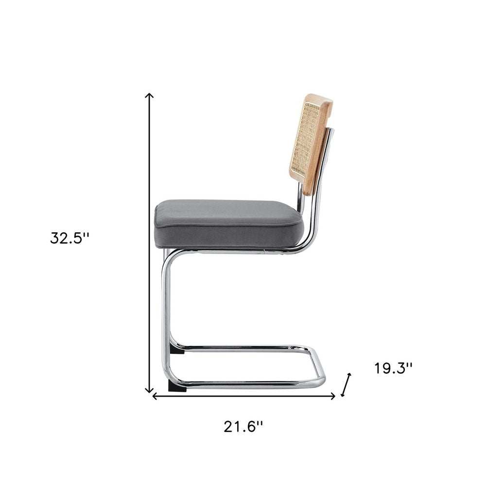 Set of Two Navy Blue and Silver Upholstered Velvet Dining Side Chairs