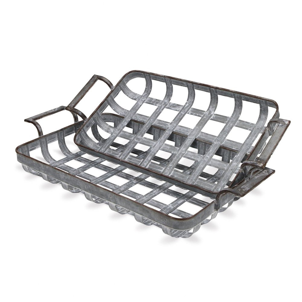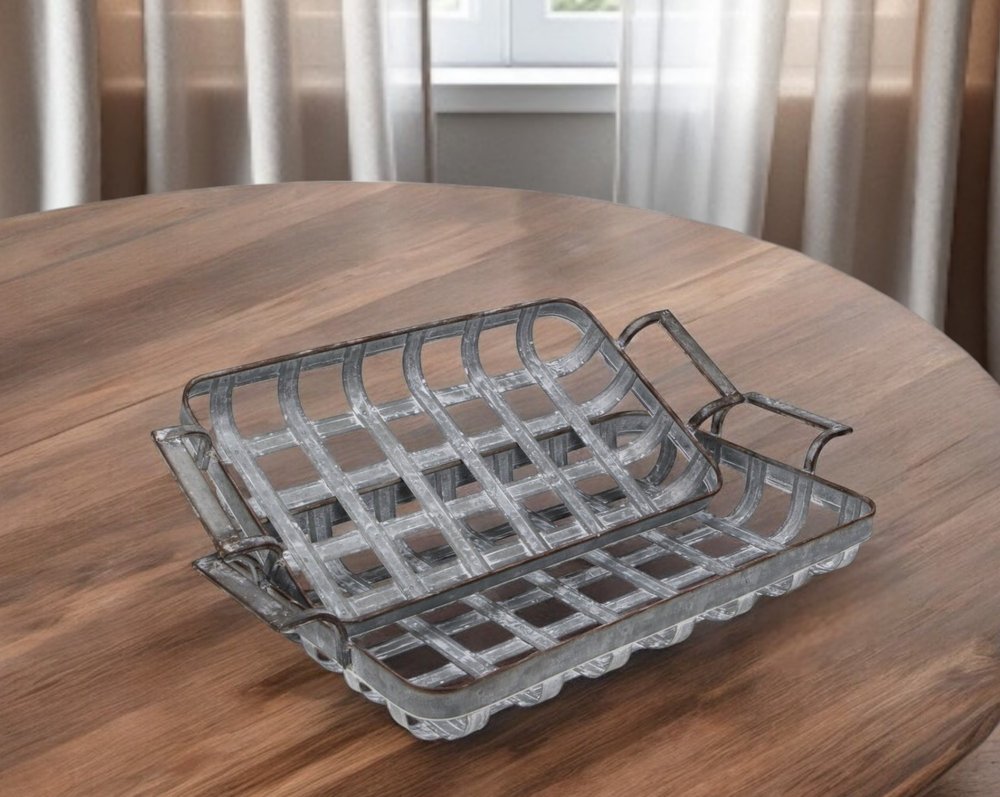 Set of Two Gray Metal Handmade Serving Tray With Handles