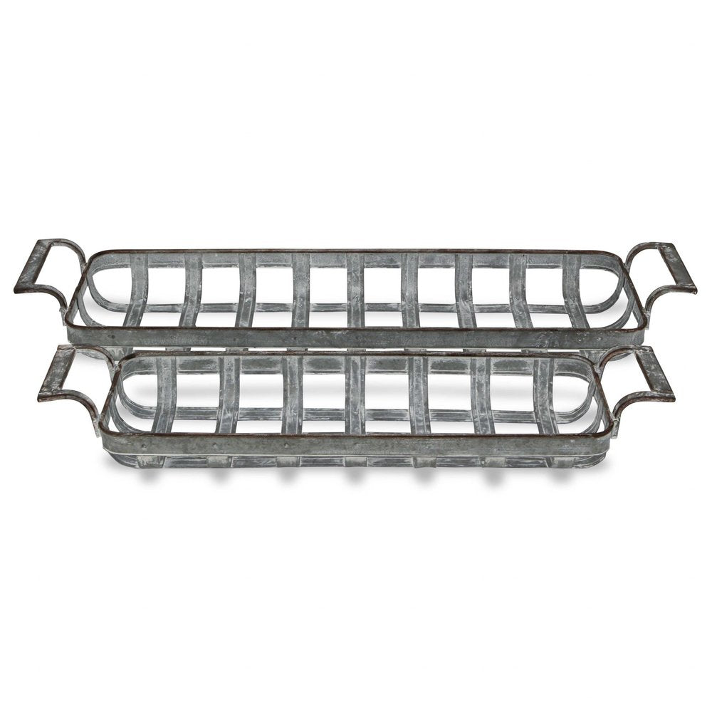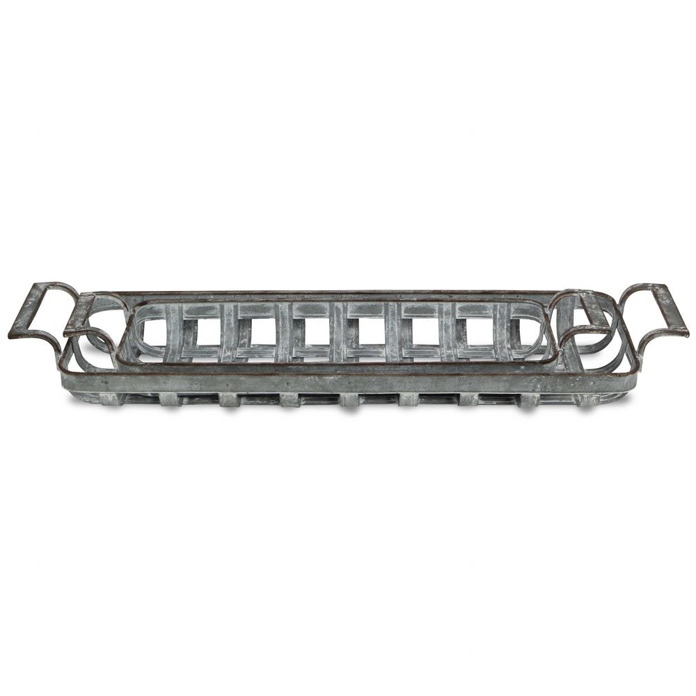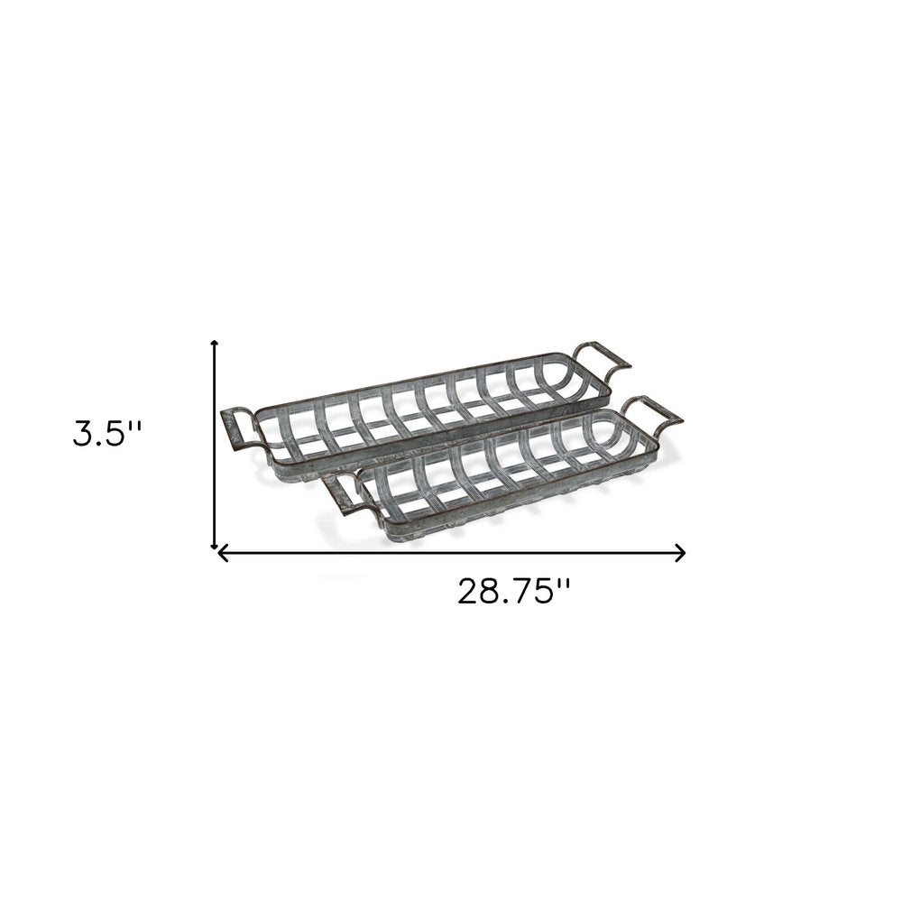 Set of Two Gray Metal Handmade Tray With Handles