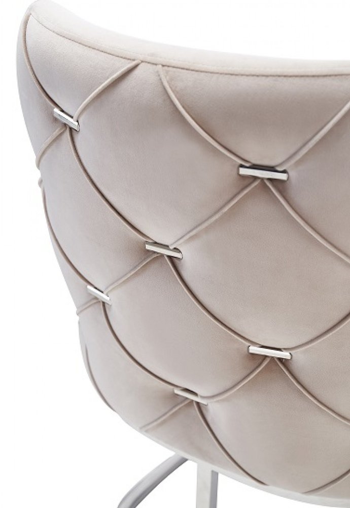 Set of Two Tufted Beige and Silver Upholstered Velvet Dining Side Chairs