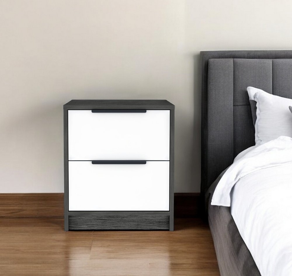 Give your room the look and feel of 5-star accommodations with this 19-inch wood two drawer nightstand. Sturdy and durable construction from manufactured wood ensures this trusty bedside table is built to last. Includes 2 drawers to give you multiple storage options to keep clutter at bay. The unsung hero of the bedroom, this nightstand is perfect for keeping a glass of water, lamp, alarm clock, jewelry, and more, close by and easily accessible. Versatile in use this nightstand would also work as a great end table in the living room, hallway, or office. 18.9-inch h x 16.1-inch w x 14.3-inch d.