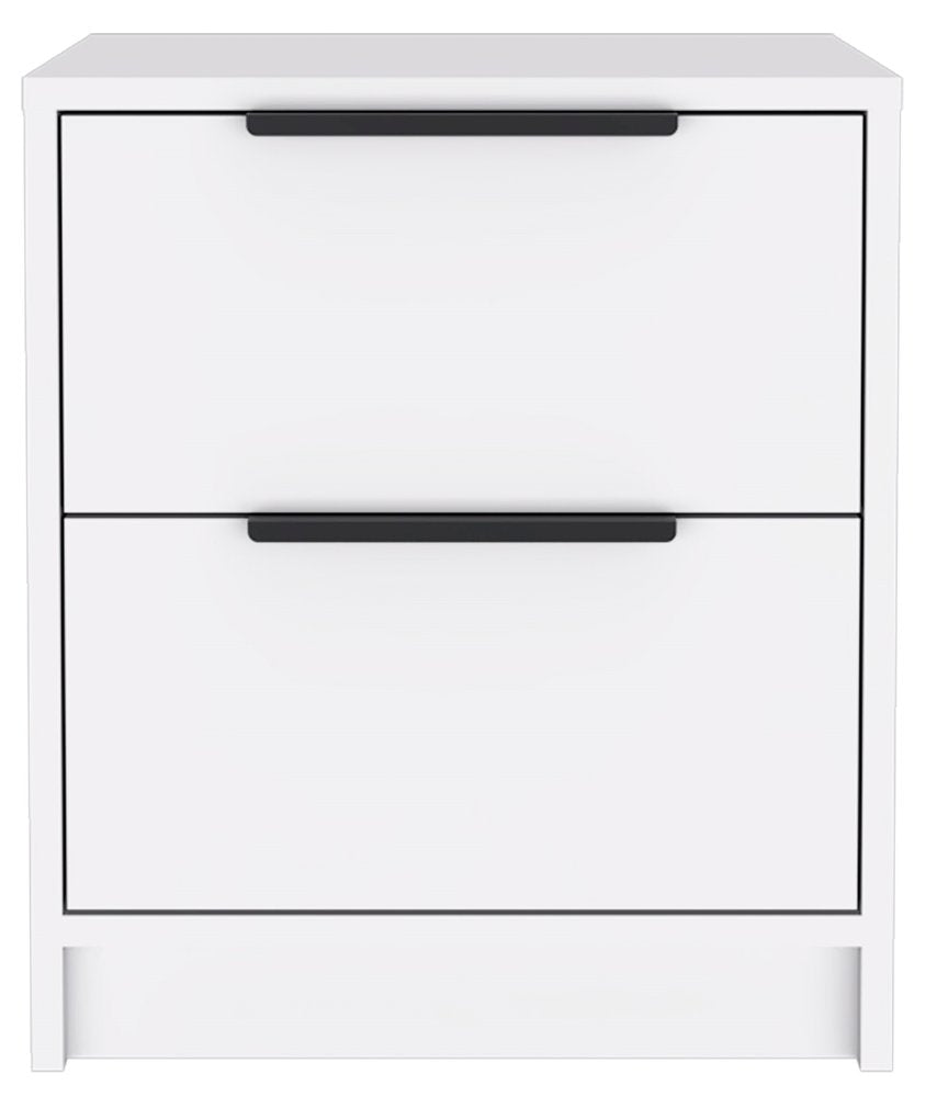 Give your room the look and feel of 5-star accommodations with this 19-inch wood two drawer nightstand. Sturdy and durable construction from manufactured wood ensures this trusty bedside table is built to last. The piece has 2 drawers to store your bedtime essentials close to you as you rest. The unsung hero of the bedroom, this nightstand is perfect for keeping a glass of water, lamp, alarm clock, jewelry, and more, close by and easily accessible. Look no further than this nightstand to accommodate all your needs and upgrade the style of your bedroom. 18.9-inch h x 16.1-inch w x 14.3-inch d.