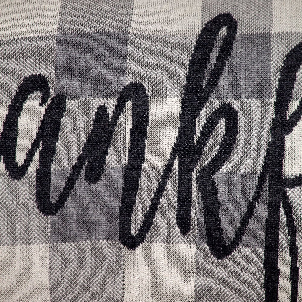 Show your gratitude everyday with this Thankful Buffalo Plaid Lumbar Throw Pillow. This is an organic woven pillow made from 100% cotton. It has a checkered pattern on the front and back sides, with “Thankful” text in black against the grey background, making it a great accent. 16” x 24” x 4”