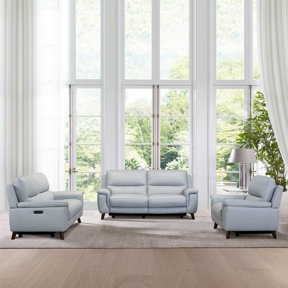 Step into a world of unparalleled seating comfort with our remarkable three piece indoor gray leather six person seating set. Prepare to enter the realm of ultimate relaxation with this reclining sofa that offers unparalleled comfort and luxurious lounging. Upholstered in supple and luxurious leather, this set has a rich and warm appeal. Solid or two-tone colorations allow you to blend easily with most any decor. Sinuous springs seat construction provides excellent comfort by offering a responsive and supportive seating experience. The inclusion of a loveseat into your mix allows a fashionable seating option in a compact design. 37-inch H x 78-inch W x 37-inch D