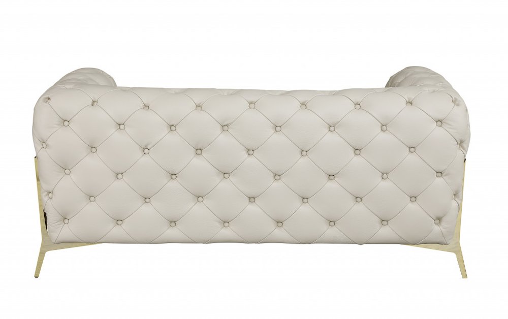 When it comes to indoor seating, this two piece indoor beige italian leather five person seating set has everything you need to get set and ready to relax. Upholstered in supple and luxurious genuine leather, this set has a rich and warm appeal. Coil spring seat construction provides excellent comfort by offering a responsive and supportive seating experience, gently contouring to the body's natural curves. Tufted cushioning provides a visually appealing texture and pattern on the cushions, adding a touch of elegance and sophistication to your furniture. The inclusion of a loveseat into your mix allows a fashionable seating option in a compact design. Gather with family and loved ones with this seating set that will bring you all together. 30.5-inch H x 93-inch W x 38-inch D