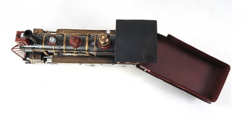 Authentic and super detailed, the Union Pacific Locomotive Sculpture is a unique handmade replica of the 4-4-0 steam locomotive built in 1868. It was handmade by a master craftsman in 100% metal and originally painted. It features many details such as rolling wheels, smokestack, and decal insignia. It is a great display piece and a sought-after piece for collectors and train enthusiasts. 6.5" x 21" x 3.75"
