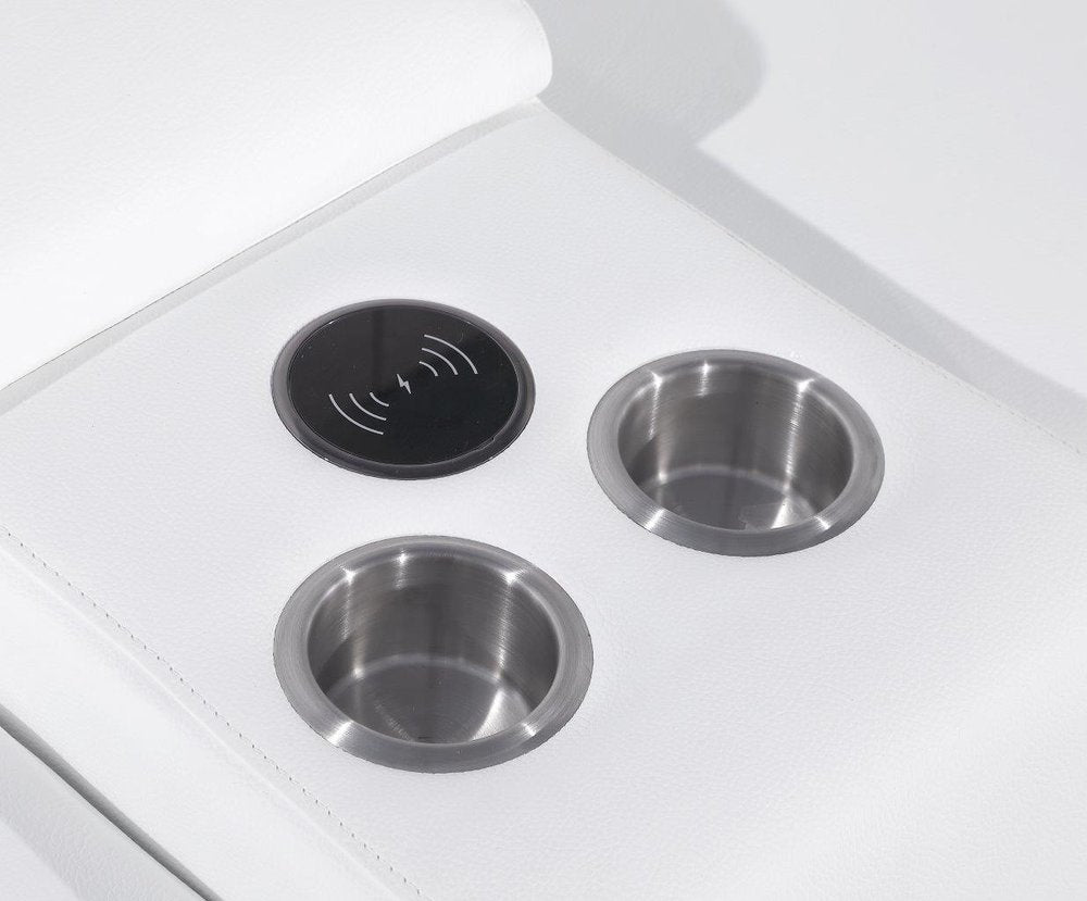 White Italian Leather Power Reclining L Shaped Six Piece Corner Sectional With Console