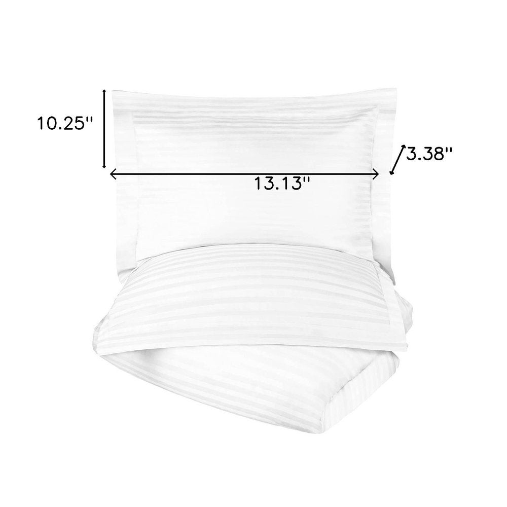 Similar to a pillowcase, this white queen cotton blend 400 thread count washable duvet cover set is intended to encase your duvet or comforter for added protection. With sturdy construction from cotton blend, the covering is designed to be soft and long lasting. As a bonus, this bedding fits the best of both worlds! It was expertly designed to stay warm in the winter but cool in the summer. Queen Sizing is perfect for the primary bedroom. This duvet cover is the perfect accessory for anyone who is in need of a great night's sleep. Style, durability, and comfort combine so you can rest easy knowing that you're covered duvet cover. 10.25" H x 13.13" W x 3.38" D