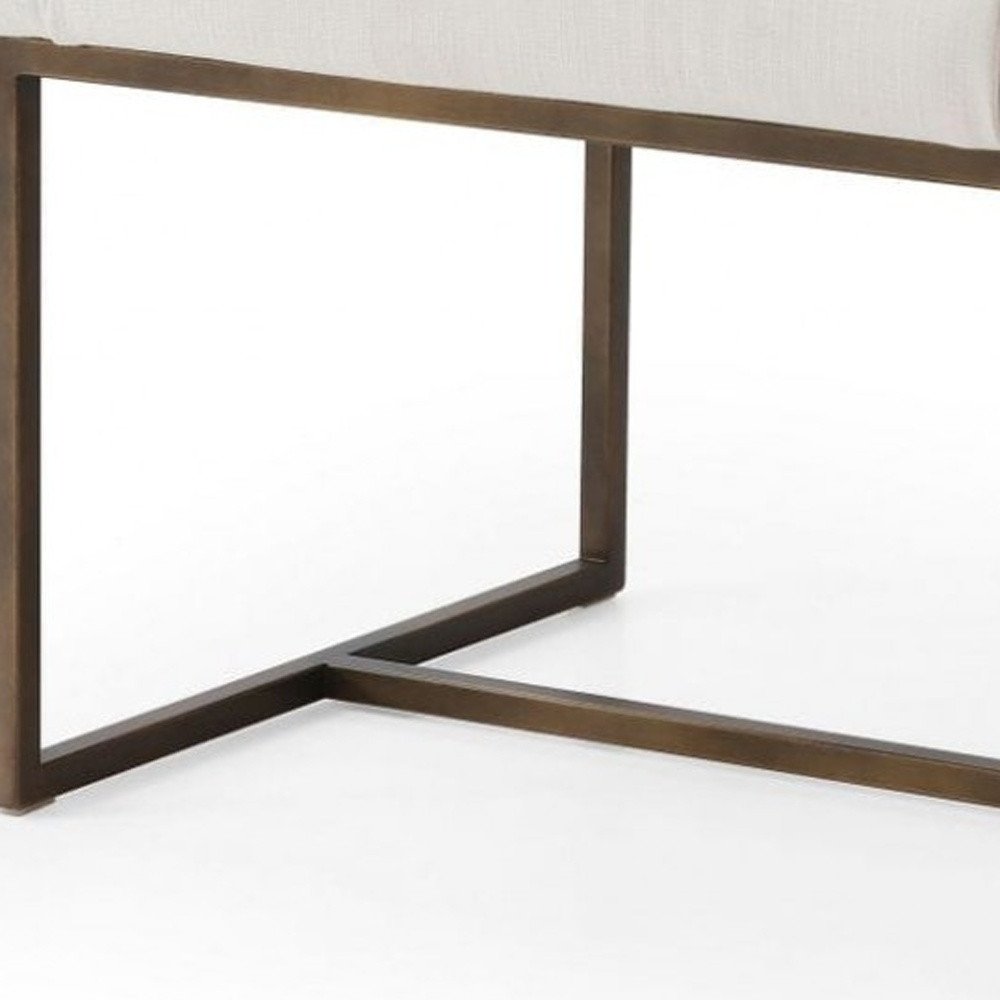 Bring this comfortable white and brass upholstered fabric dining arm chair to your table to enjoy long lasting quality time with your family and friends. The solid back gives this chair its unique style. Dining chairs are a great way to compliment your kitchen or dining room but can also be used in the foyer, hallway, or any room you might need extra seating. 30.7-inch h x 24-inch w x 24-inch d.