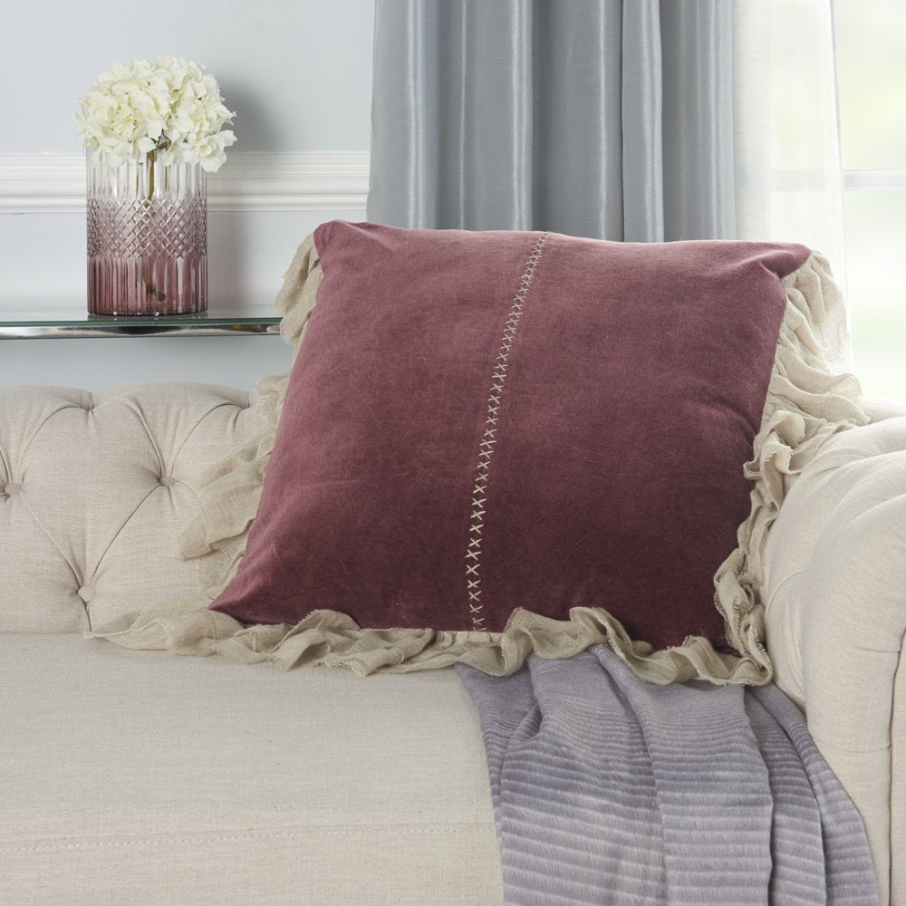 This wide tasseled marble maroon throw pillow will add a beautiful decorative accent to your decor. This soft and durable decorative pillow is expertly made of high grade, long lasting cotton blend in a maroon coloration. Super soft and built to hold its shape, this polyester pillow is a great option. Great to use on its own or mix with other decorations for the perfect look. A great decorative accessory for your favorite chair, to accent your sofa, or to use as part of your bed ensemble. 22-inch H x 22-inch W x 5-inch D